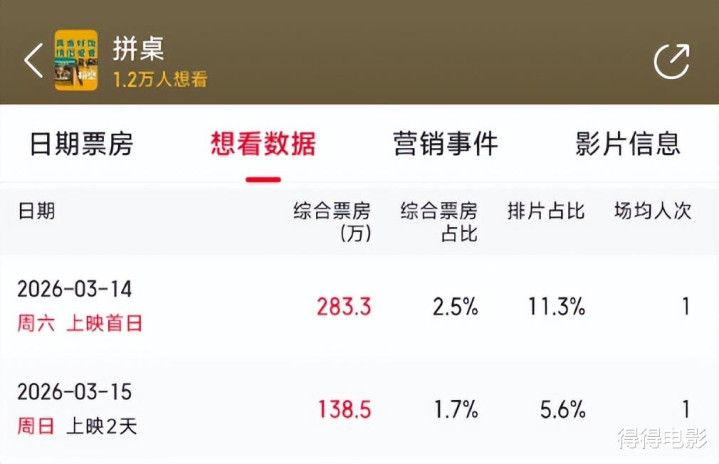 3月14号,电影《拼桌》上映了。